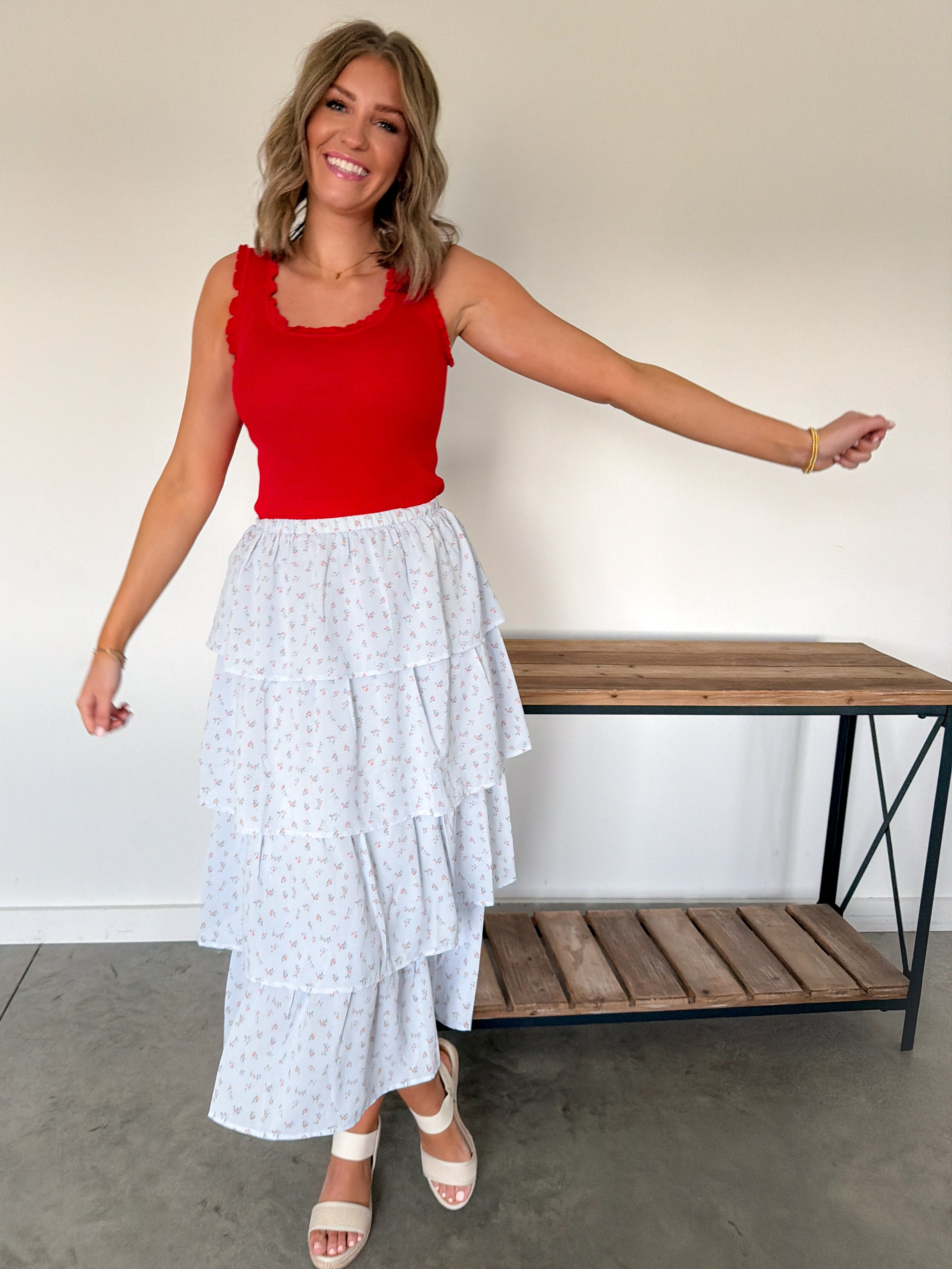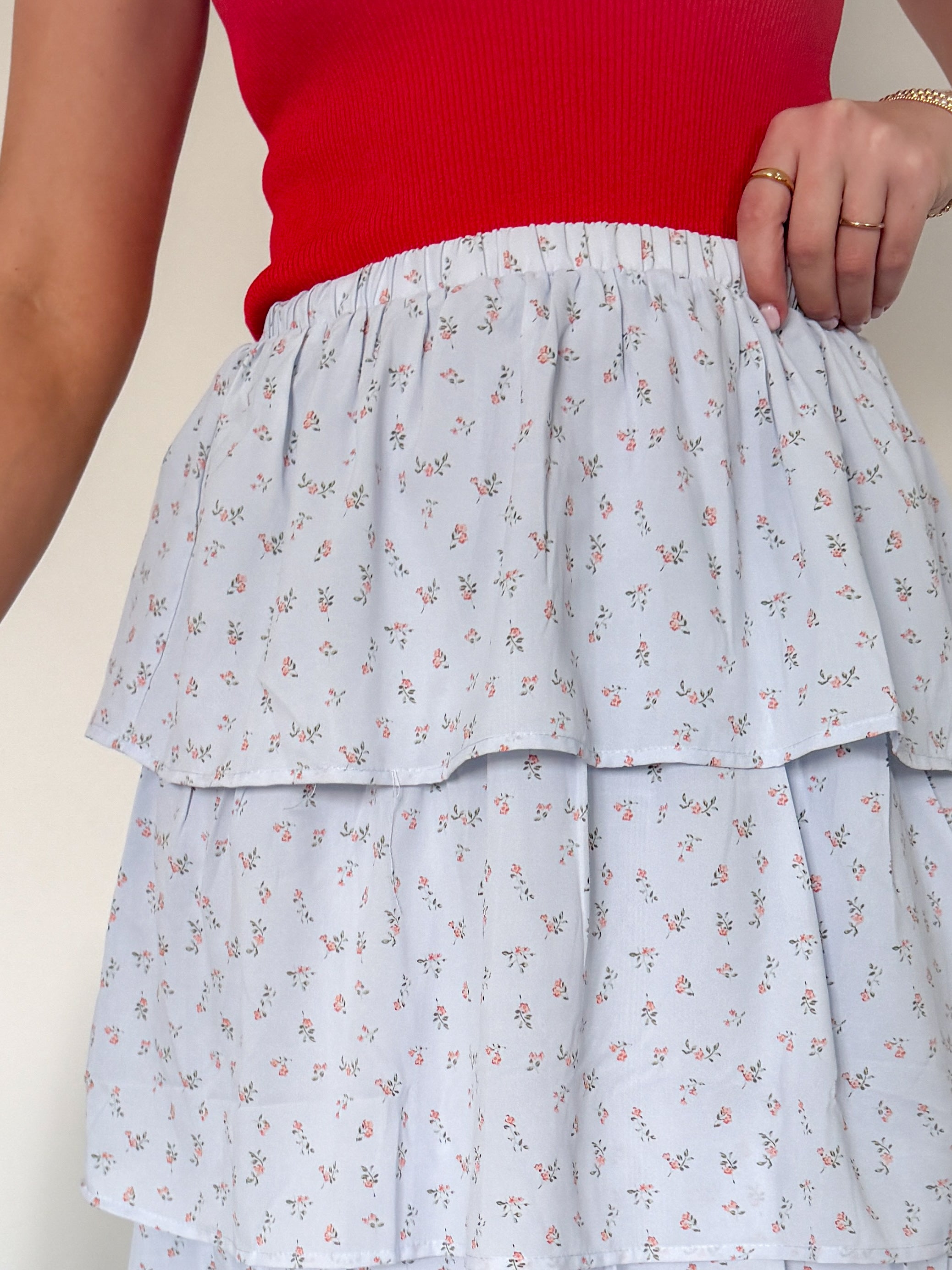 This floral midi skirt is the perfect blend of comfort and effortless style. With its flattering fit and lightweight feel, it moves beautifully with you while keeping things cool and comfortable. The soft blue tones and delicate print give it a fresh, feminine look that’s perfect for spring and summer.