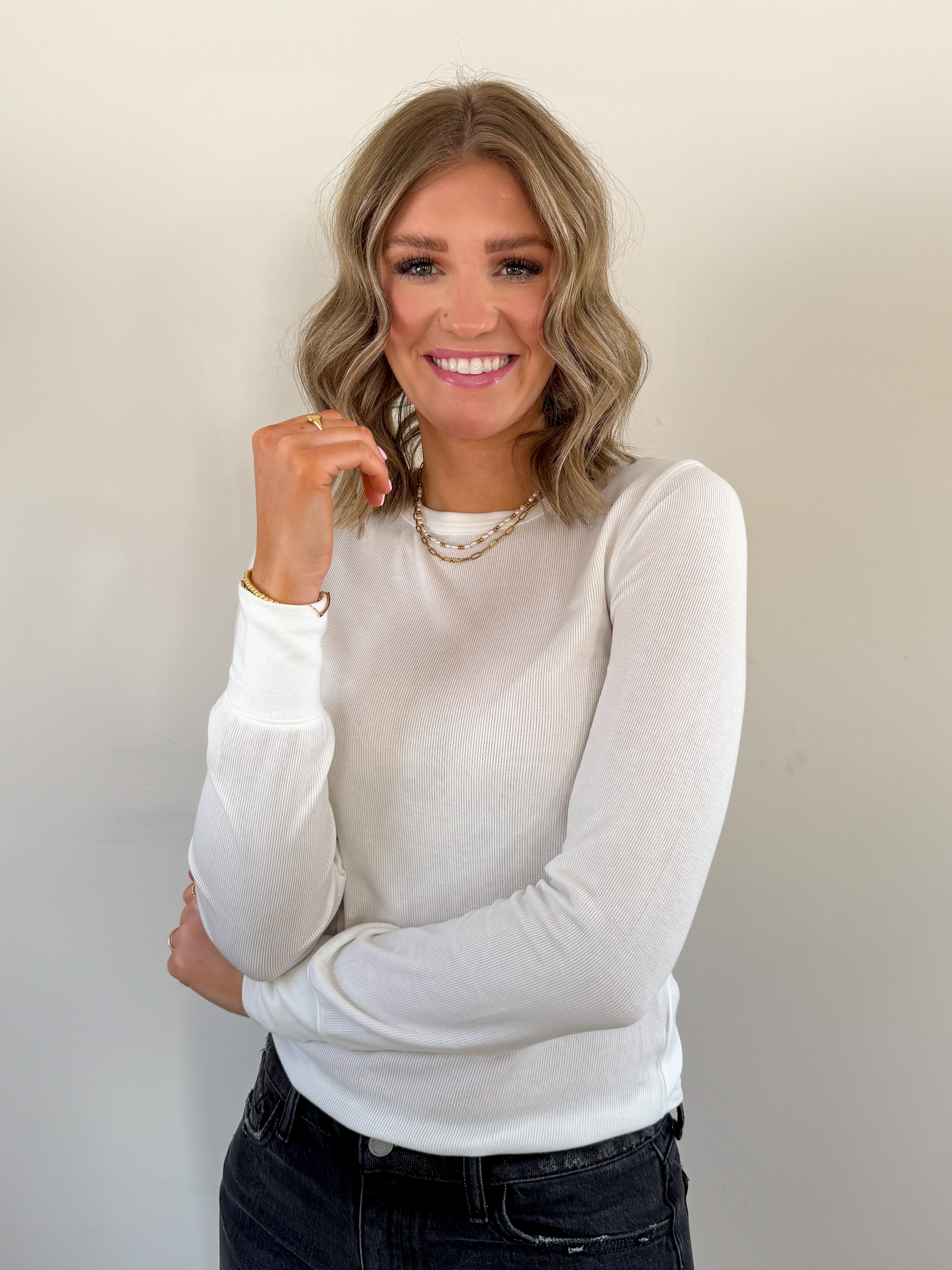 SIZING: True to size. Fitted throughout. Size up if you are in between sizes. Rachel would wear a medium.