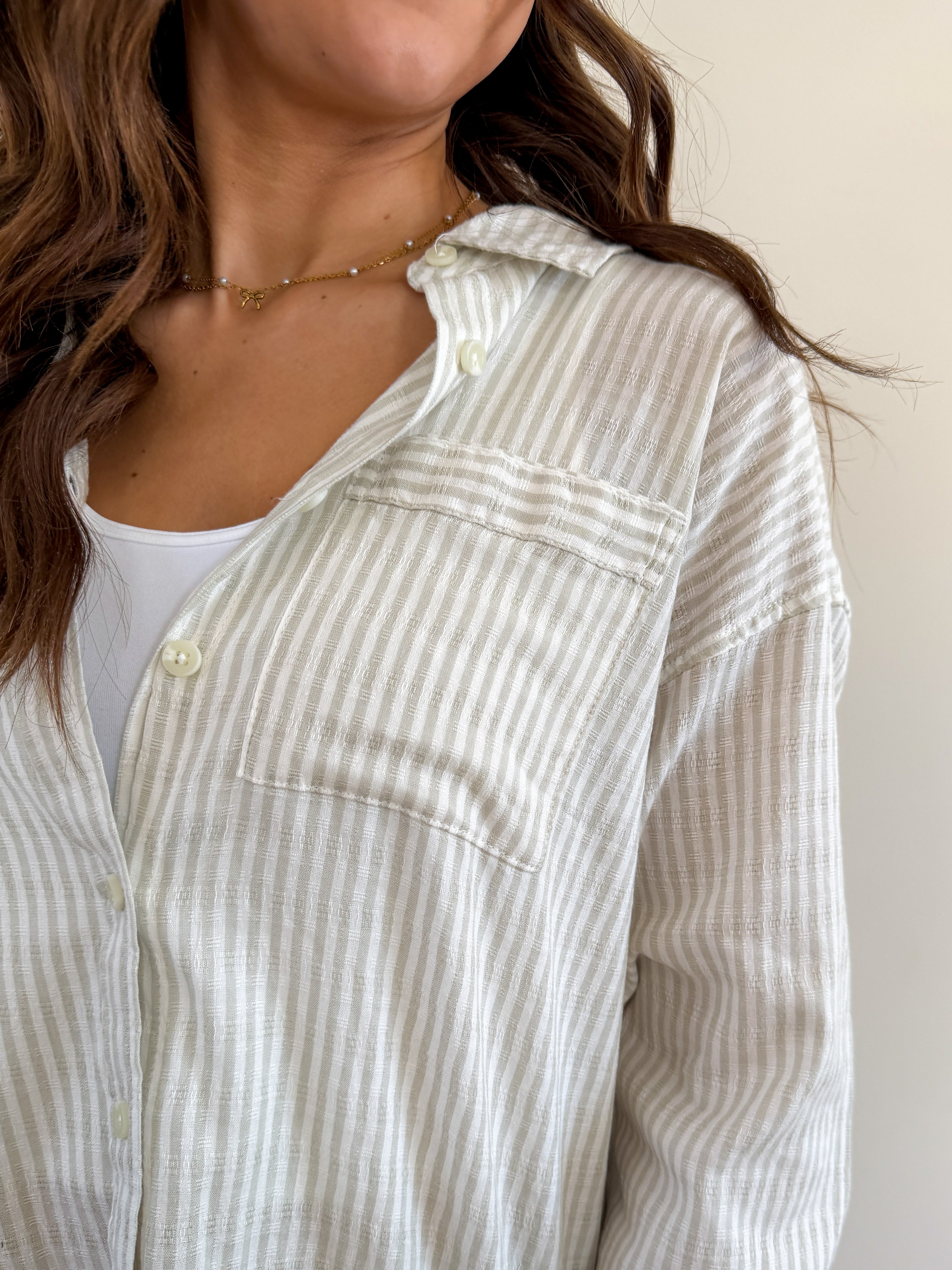 SIZING: True to size with no stretch. Model is wearing a small. Rachel would wear the medium.