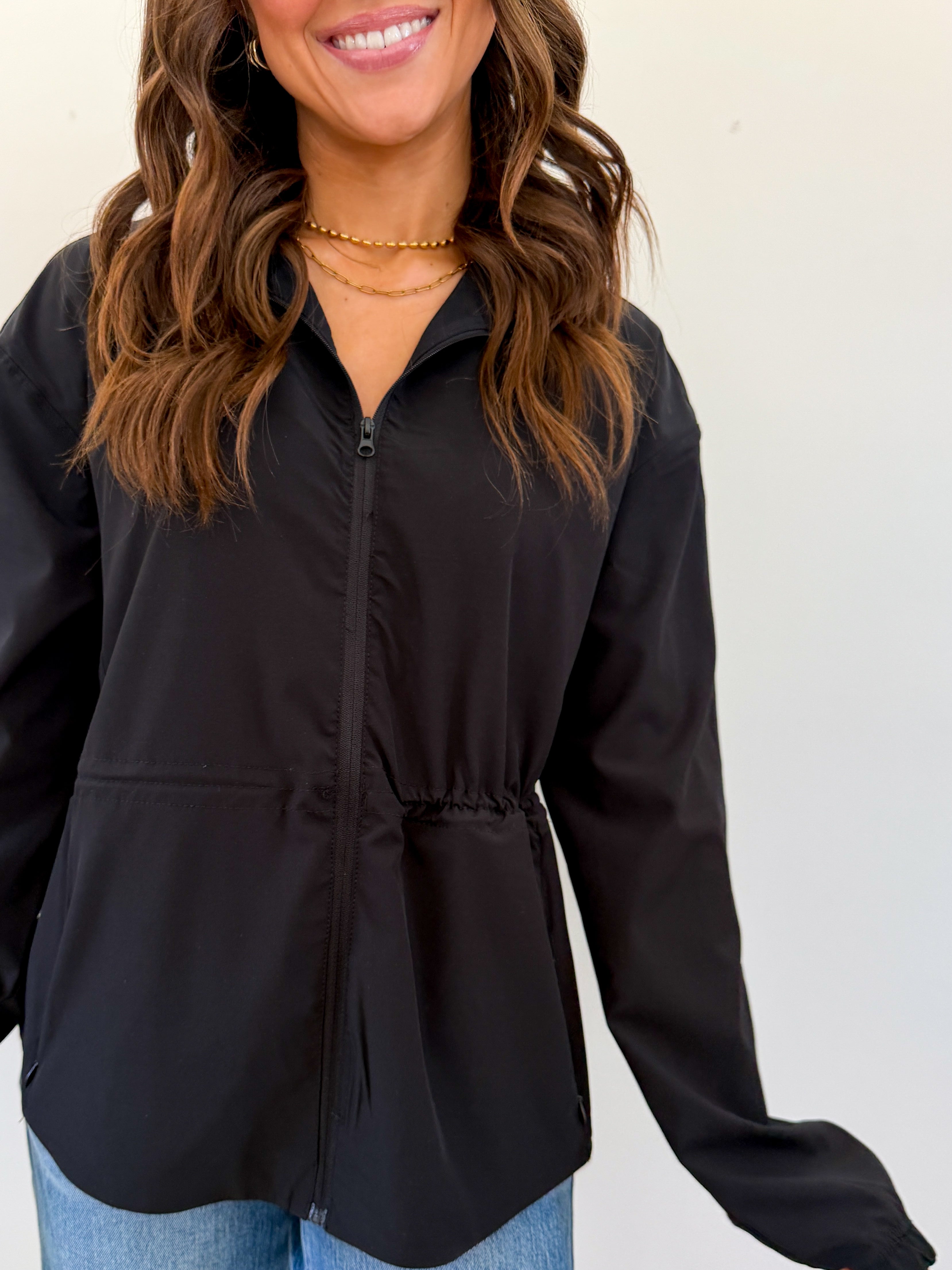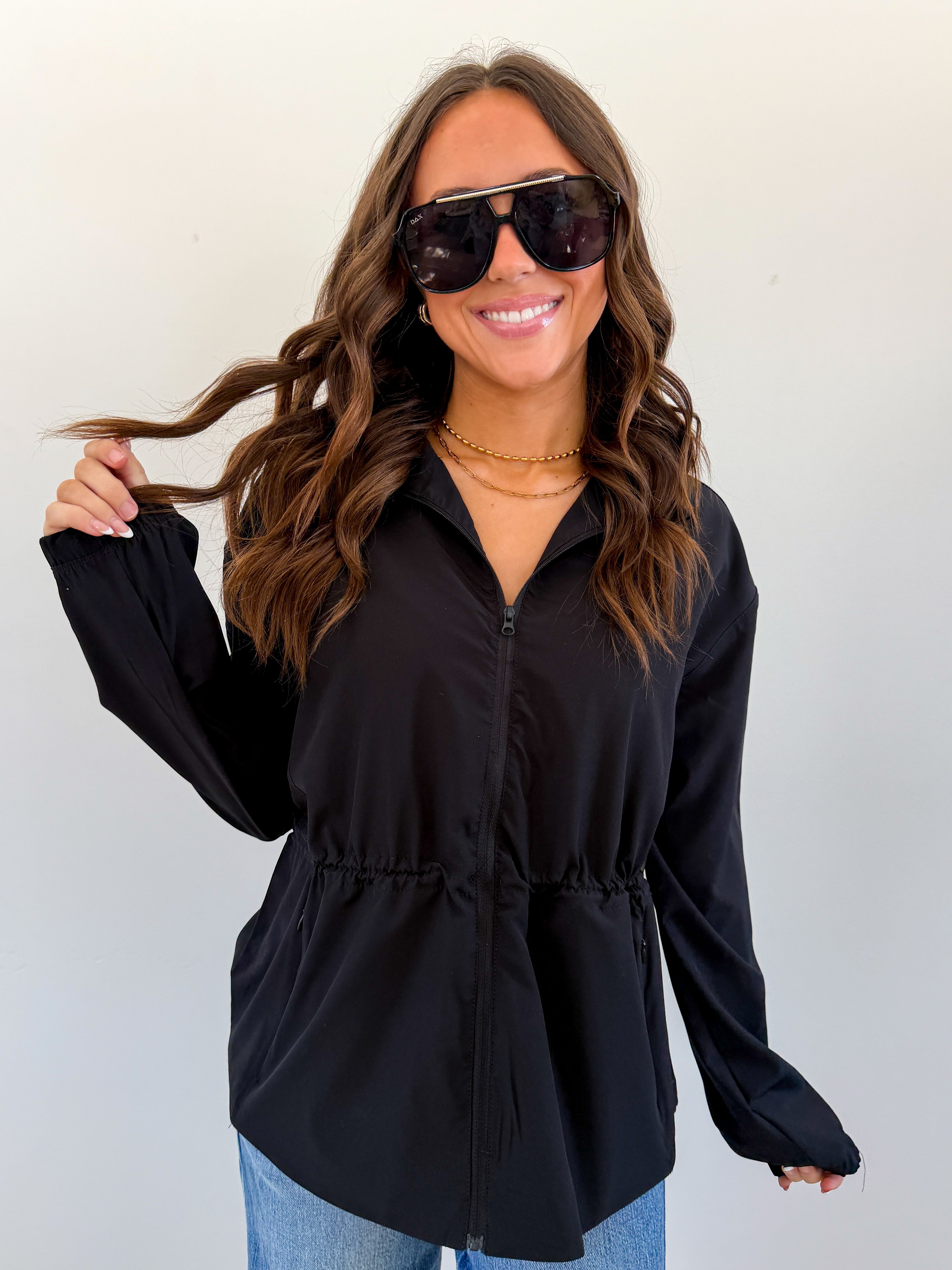 SIZING: True to size, model is wearing a small. Cinches at the waist for more of a fitted look. Rachel would wear the medium.